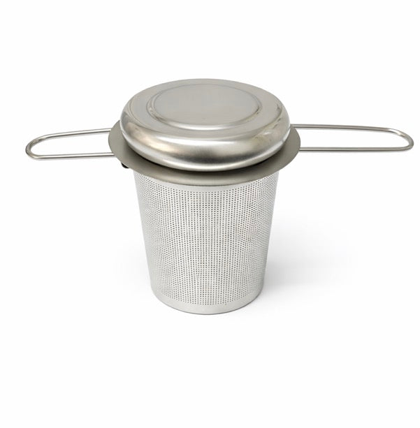Filtro de té elaborado en acero inoxidable 304 grado alimentario, diseñado para preparar té de hojas sueltas de manera práctica, limpia y eficiente.